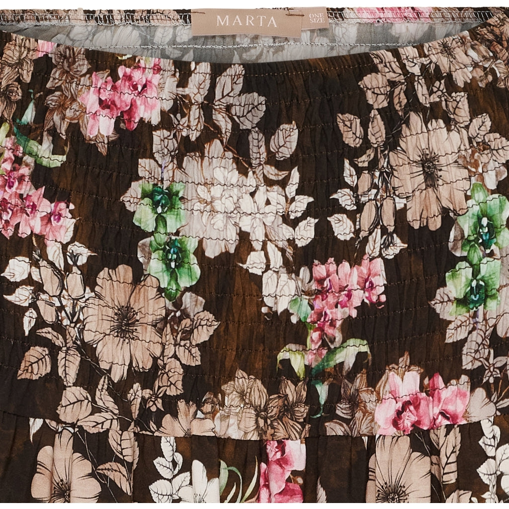 Vacker kjol från Marta med en bekväm smockkant i midjan och med den finaste trycken. Finns i en mängd olika färger. Kan användas både som kjol och som klänning, så du får 2-i-1. Super bekväm och trevlig att bära, och passar för varje tillfälle.