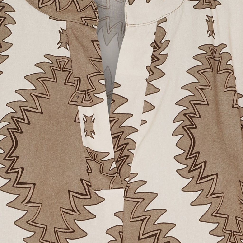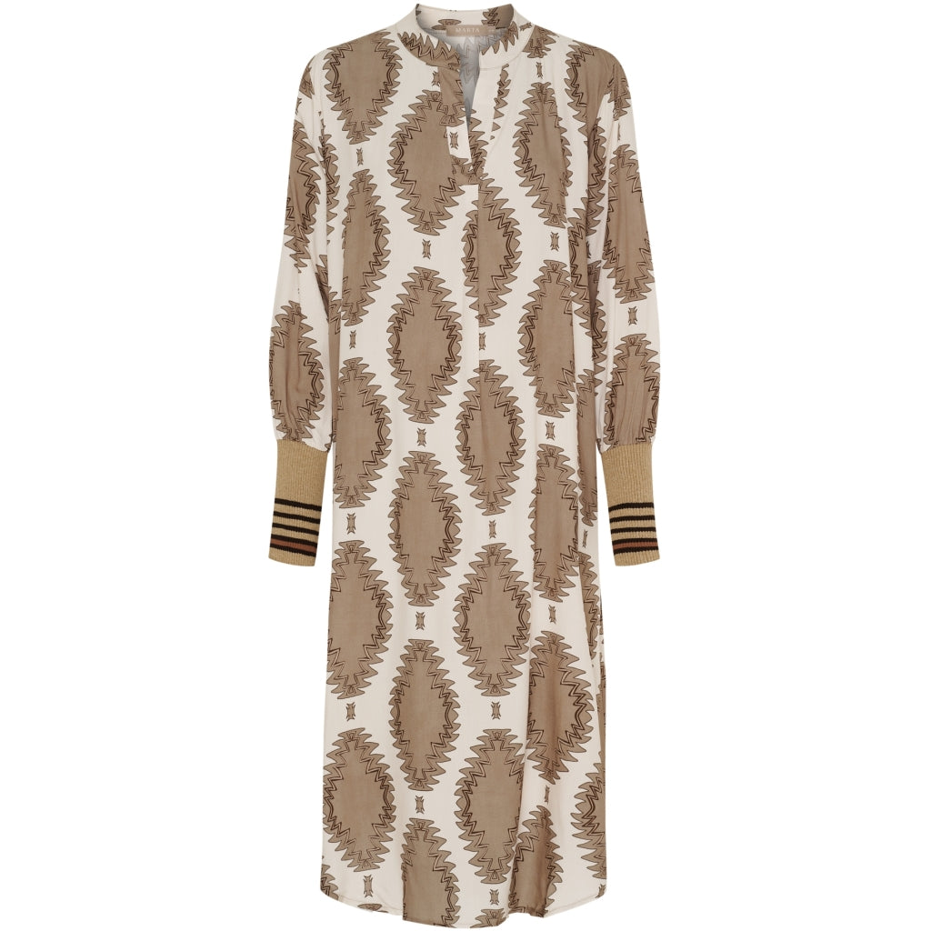 Snygg klänning från Marta Du Château i smart tryck. Skjortan har en V-ringning med en liten krage och ribbkant vid ärmen. Kan stylas med både sneakers, sandaler eller ett par stövlar.