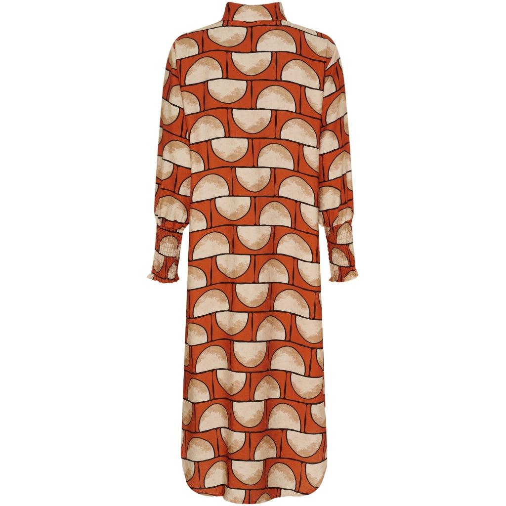 Smuk og elegant printet kjole fra Marta Du Château. Kjolen er gennemknappet, har krave og smock ved ærmer. Kan bruges til både hverdag og finere brug.