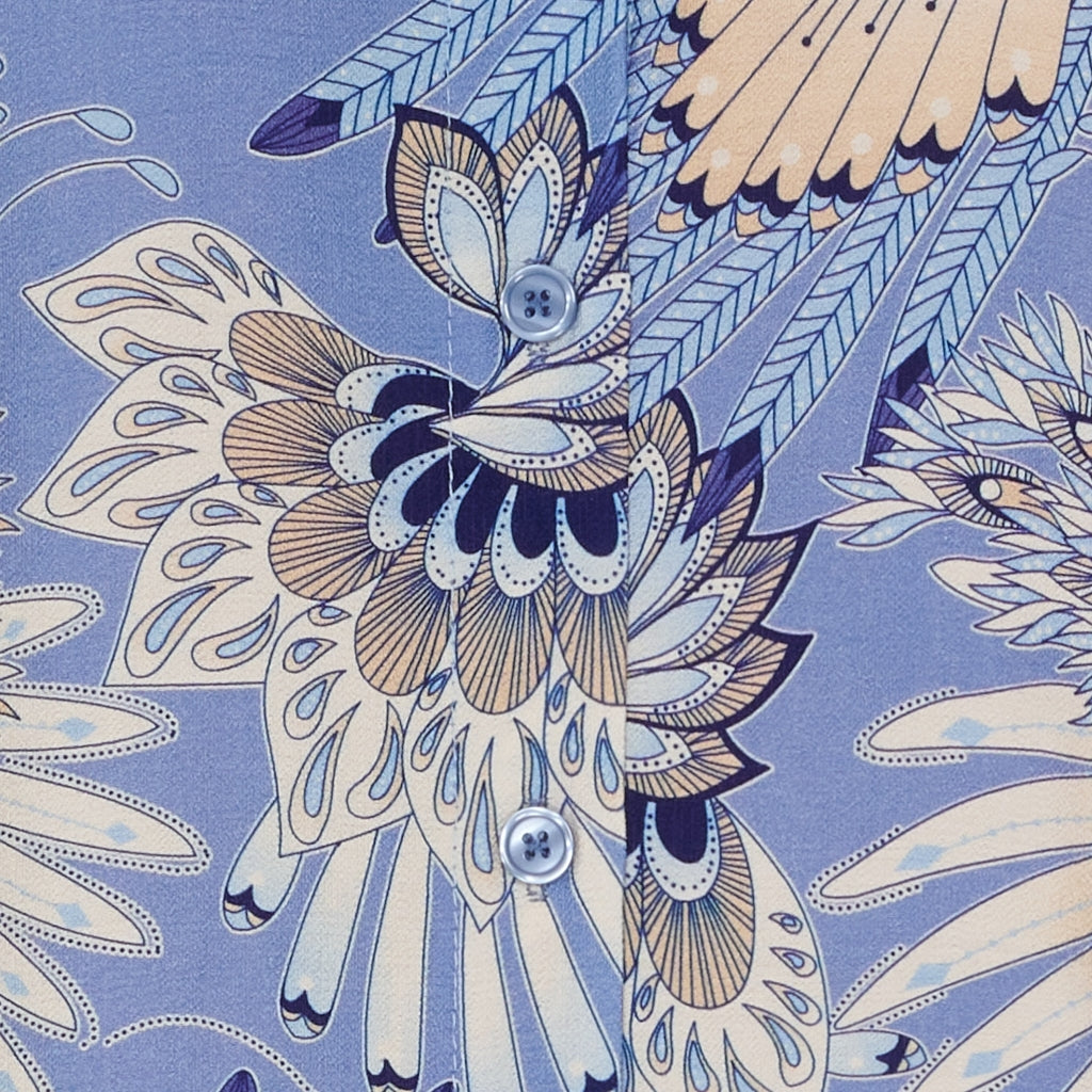 Vacker och elegant tryckt klänning från Marta Du Château. Klänningen har knappar hela vägen, krage och smockdetaljer vid ärmarna. Kan användas både till vardags och vid finare tillfällen.