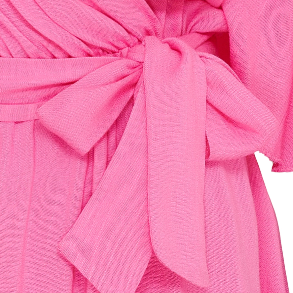 Vacker klänning med resår i midjan och en avtagbar band att knyta. 100% viskos.